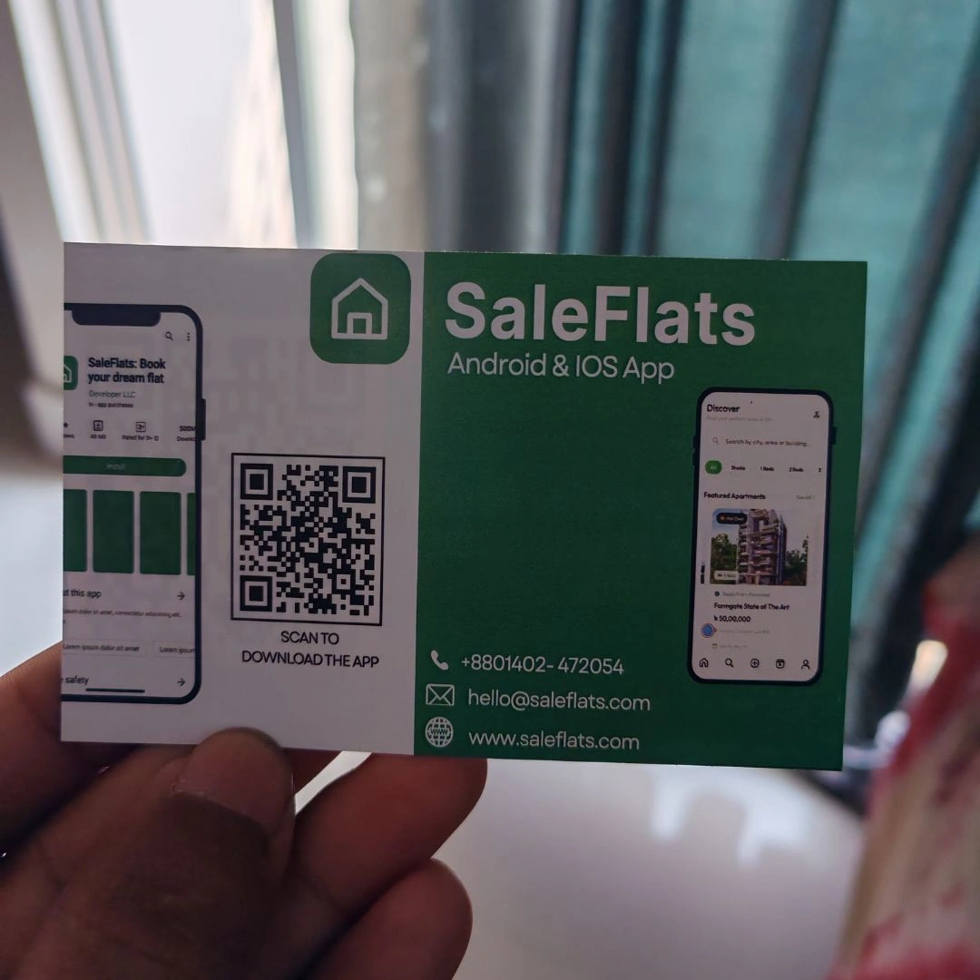 অর্ডার করুন সেলফ্ল্যাটস এর SaleFlats QR Code টি ও স্ক্যান করুন, এবং খুব সহজেই আপনার অ্যাপার্টমেন্ট বা ফ্ল্যাটটি আমাদের অ্যাপে যোগ করার সুযোগ পান।